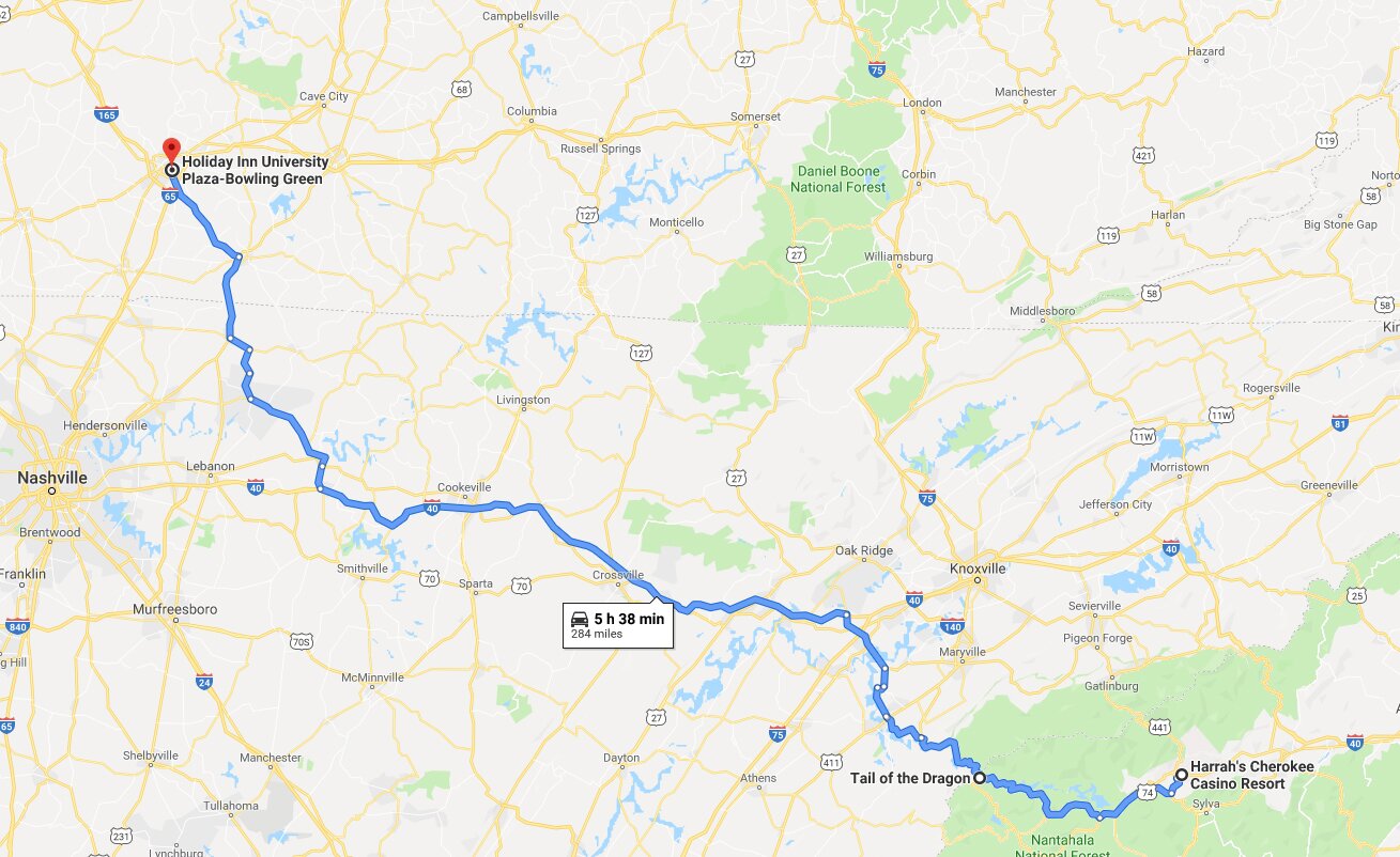 Cherokee to Bowling Green via Tail of the Dragon