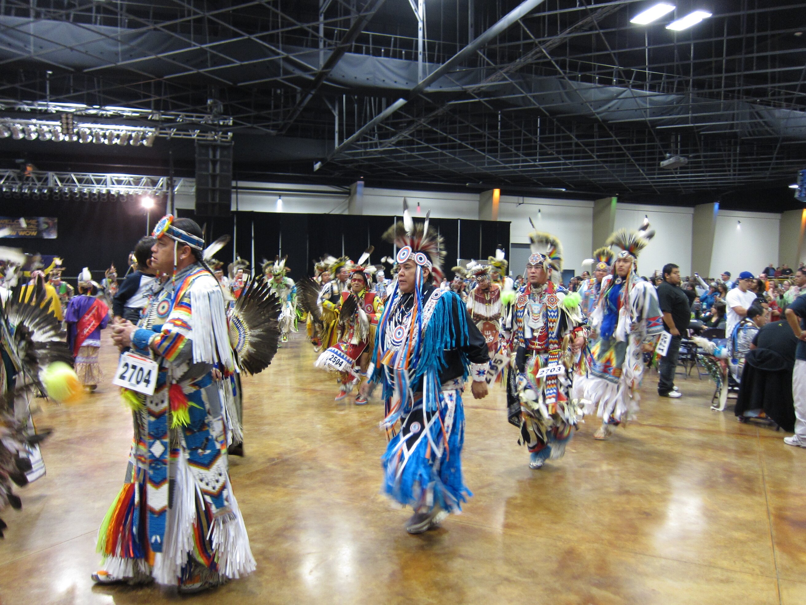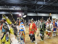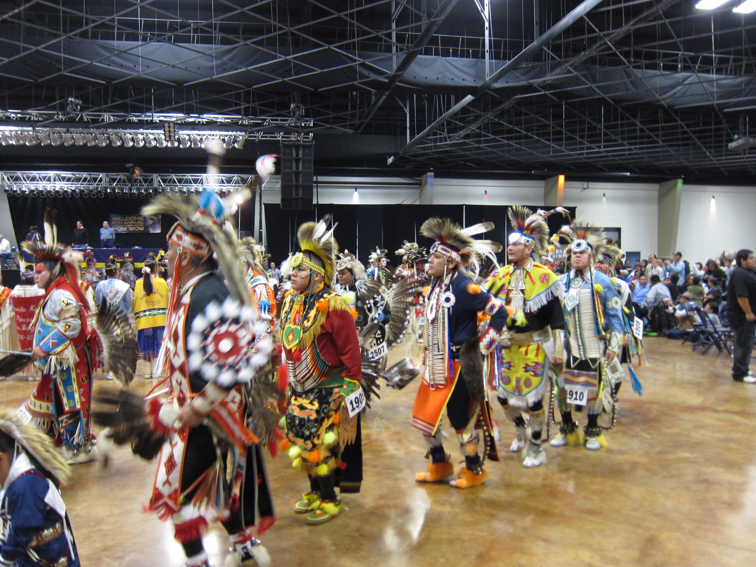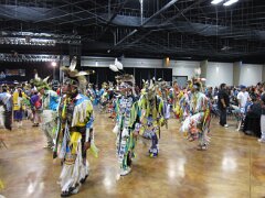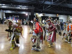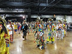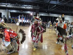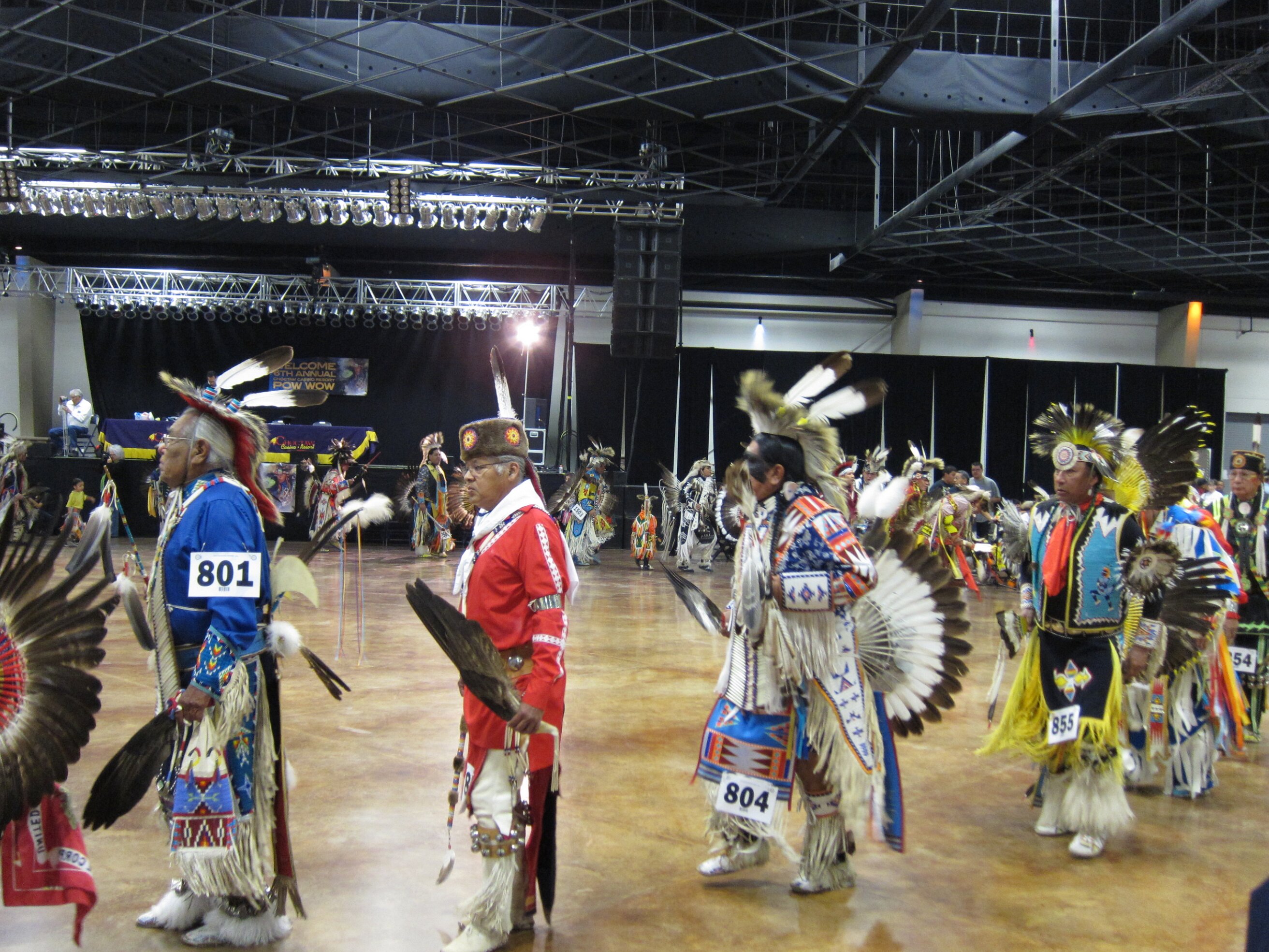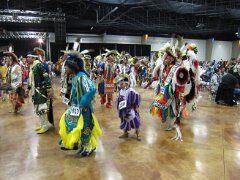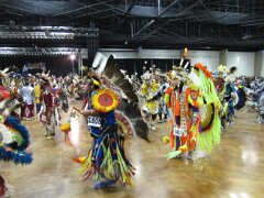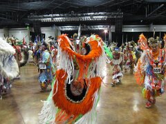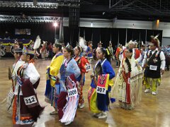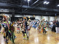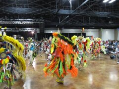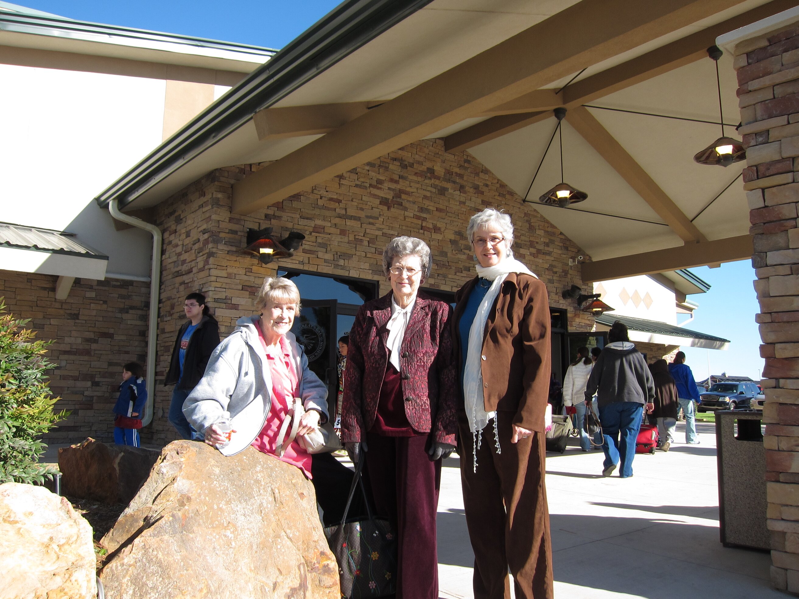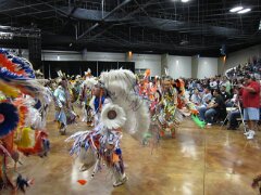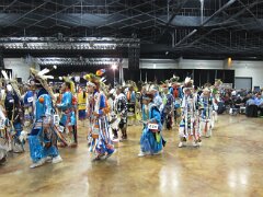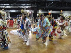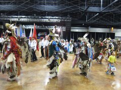While visiting family in Durant, OK we took the opportunity to attend the Choctaw 6th Annual Pow Wow being held at the Event Center of the Choctaw Casino Resort. A colorful (and noisy) event, the Pow Wow is a festival & celebration in which members of the Choctaw Tribe come from throughout the U.S. and Canada to show off their native dress, dancing abilities, and playing native instruments. All in all, a very impressive show. Standing at the entrance to the Event Center are Marian, Betty, and Kaye.