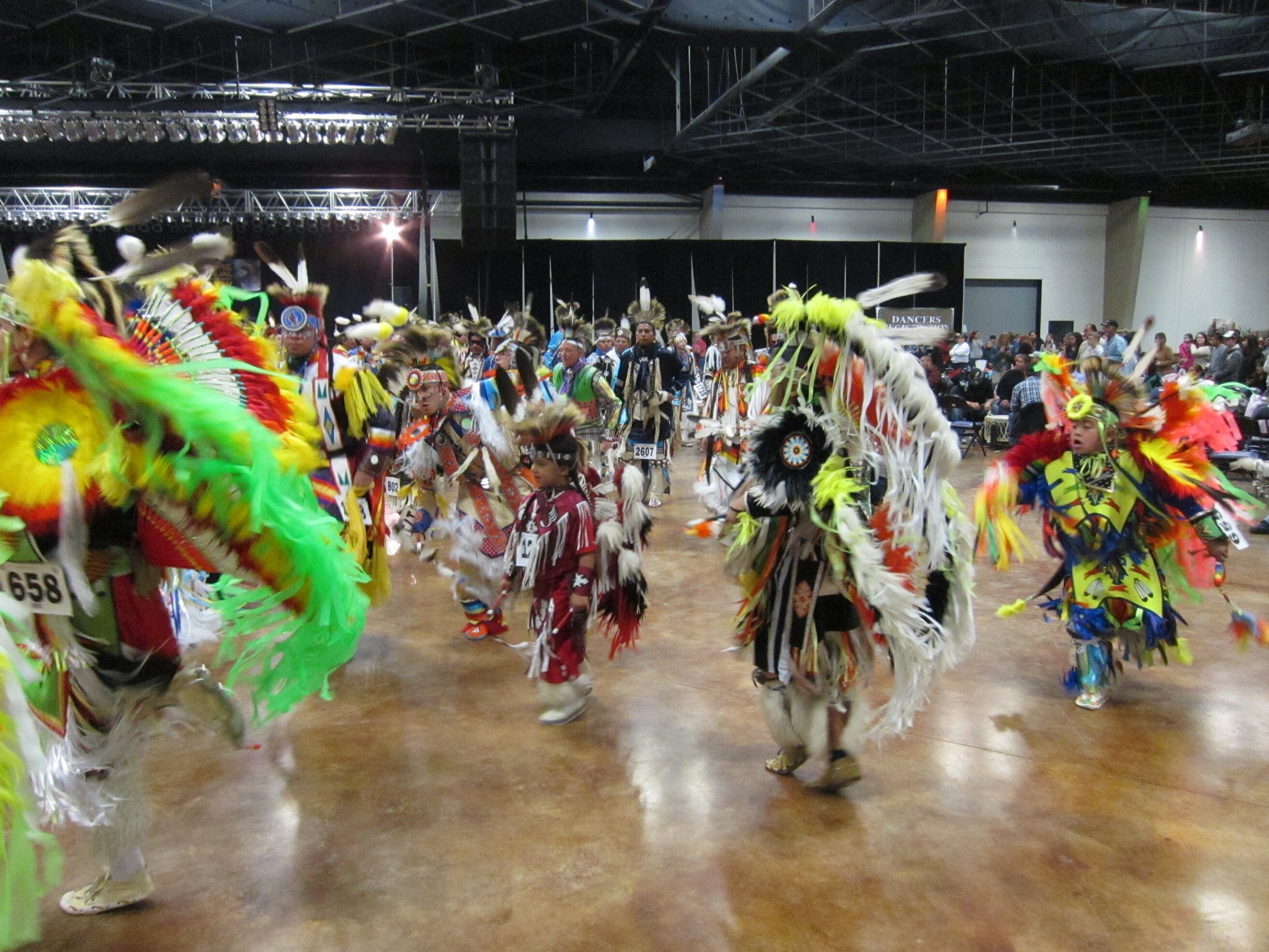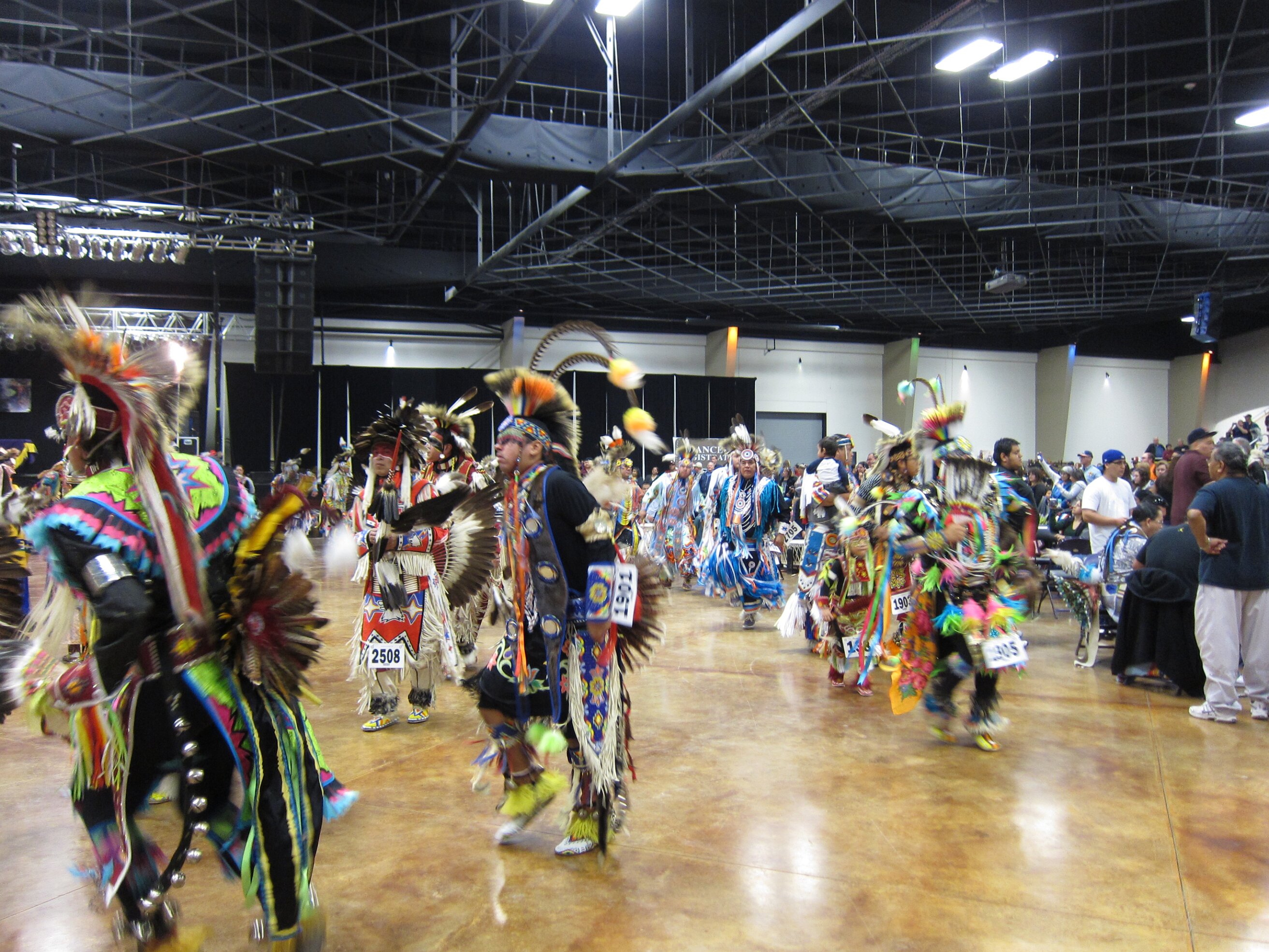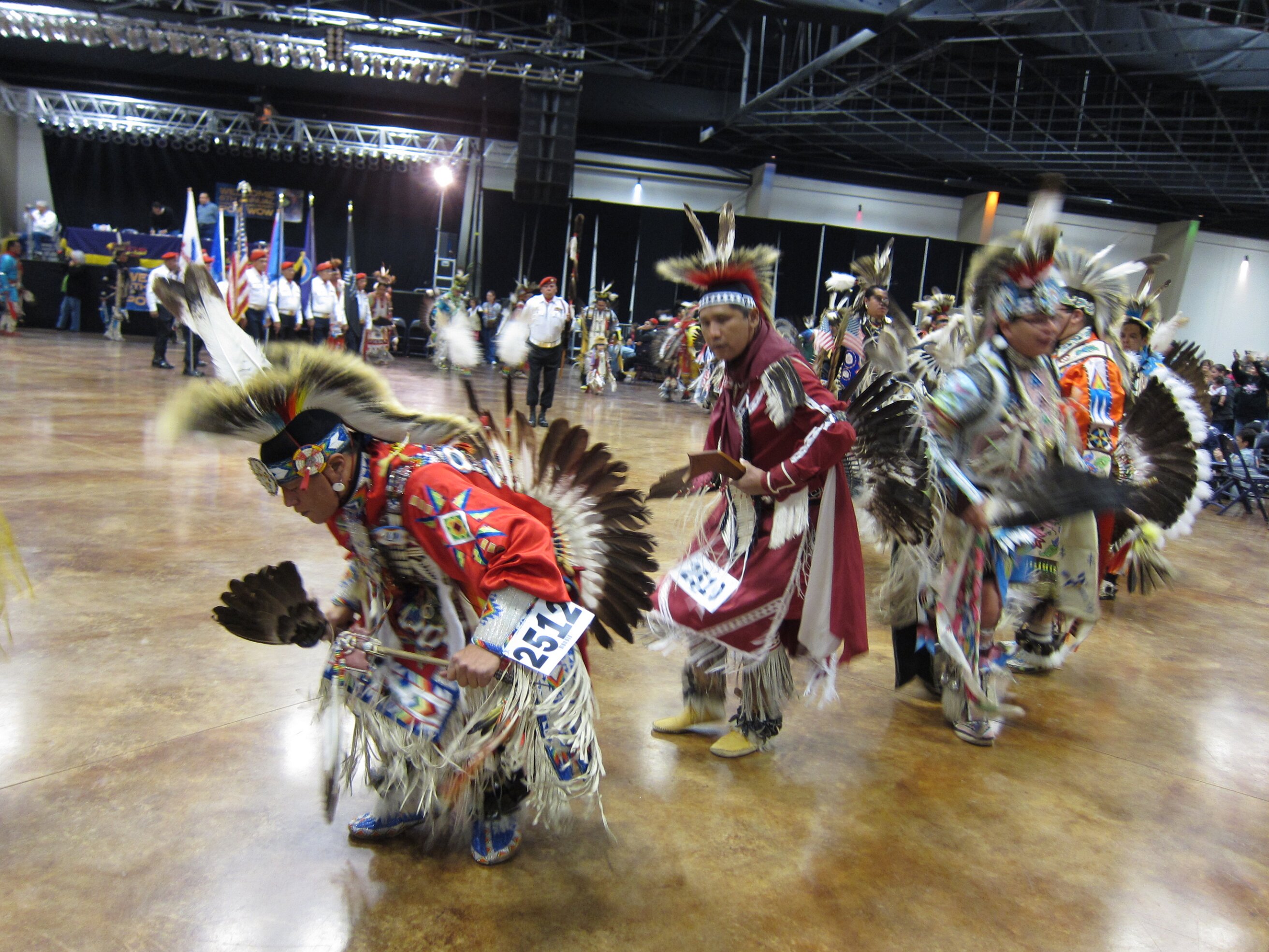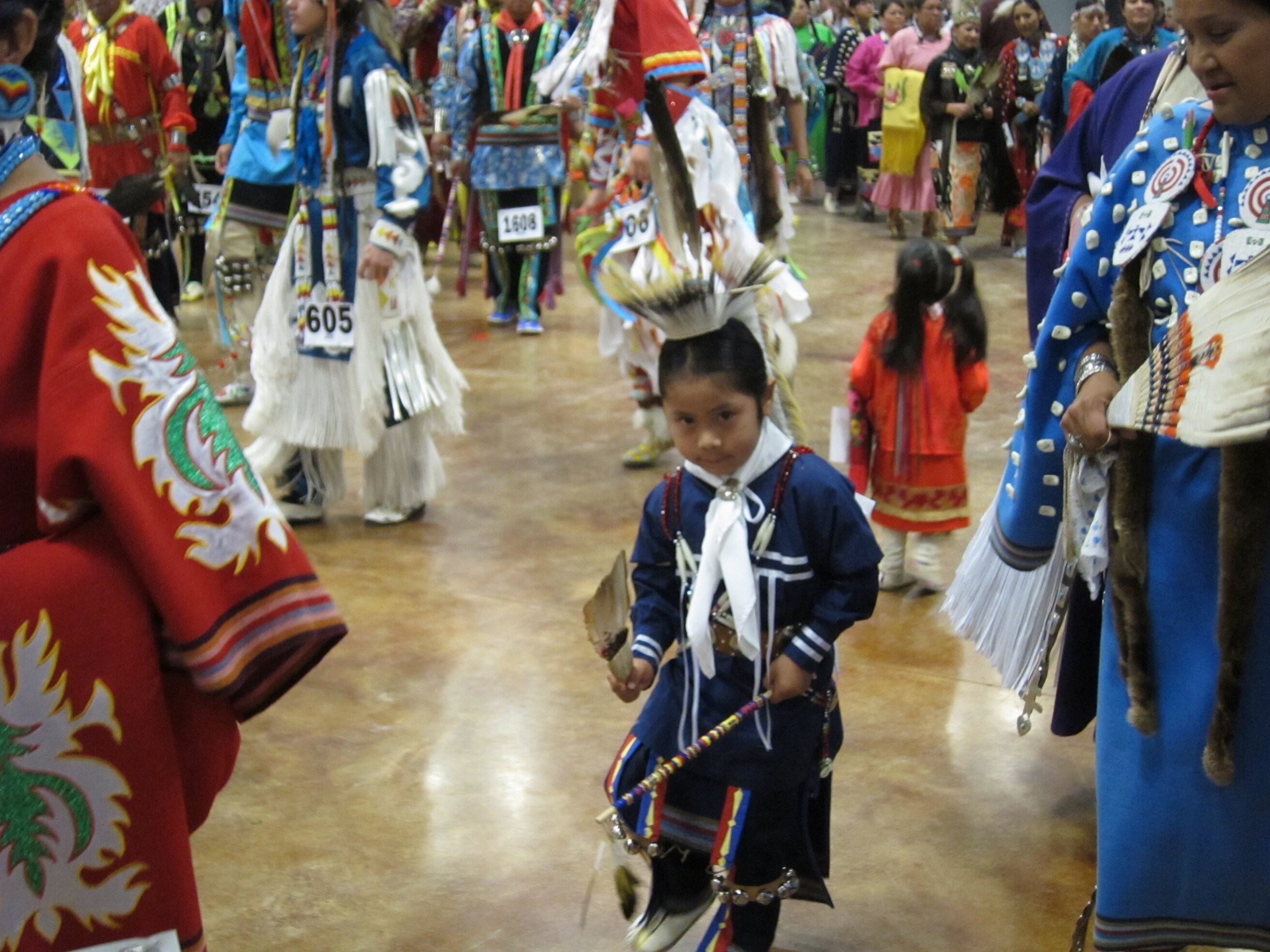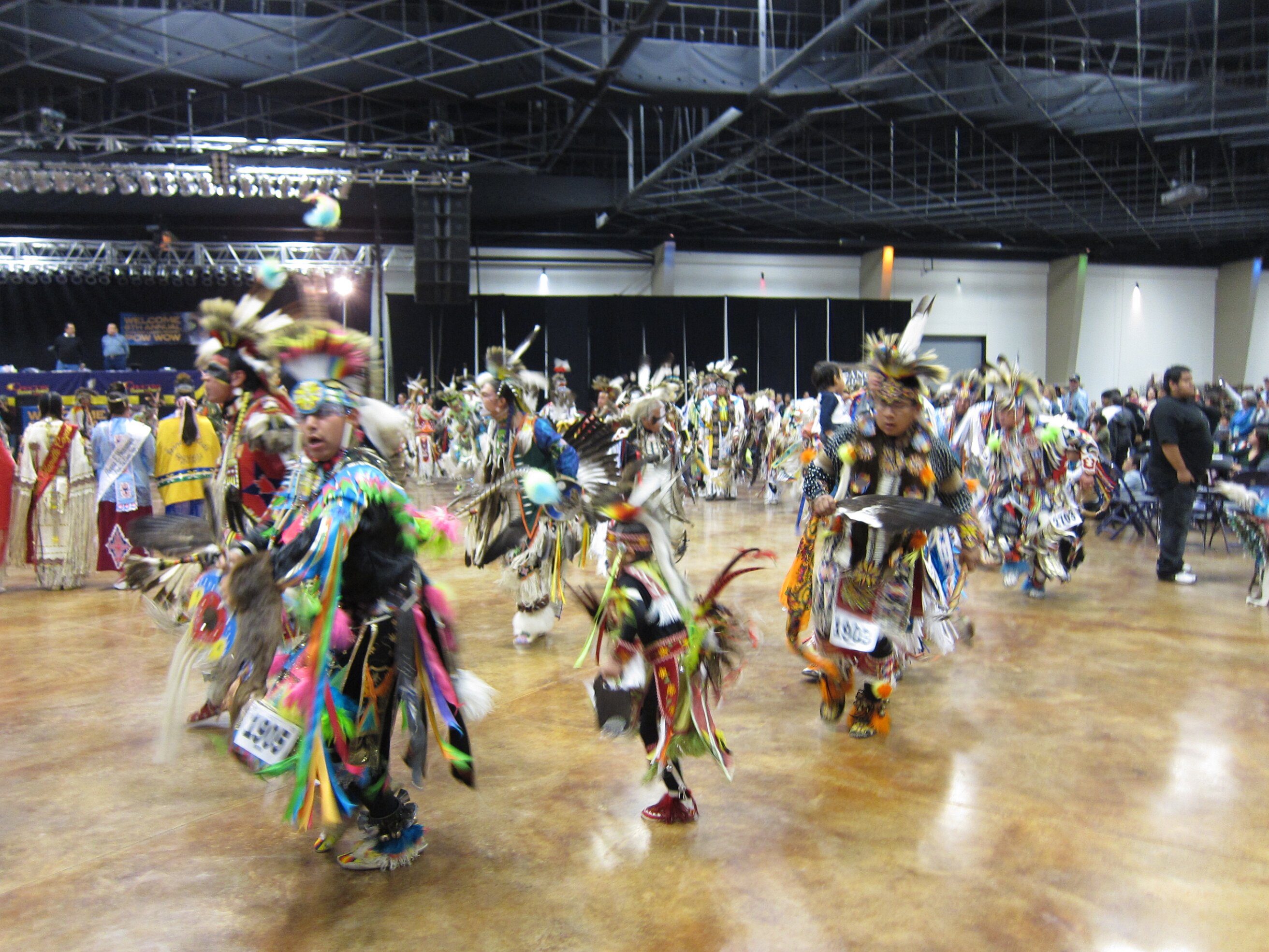 While visiting family in Durant, OK we took the opportunity to attend the Choctaw 6th Annual Pow Wow being held at the Event Center of the Choctaw Casino Resort. A colorful (and noisy) event, the Pow Wow is a festival & celebration in which members of the Choctaw Tribe come from throughout the U.S. and Canada to show off their native dress, dancing abilities, and playing native instruments. All in all, a very impressive show. Standing at the entrance to the Event Center are Marian, Betty, and Kaye.